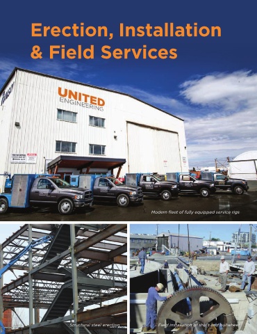Erection, Installation & Field Services Modern fleet of fully equipped service rigs Structural steel erection Field installation of shaft and bullwheel